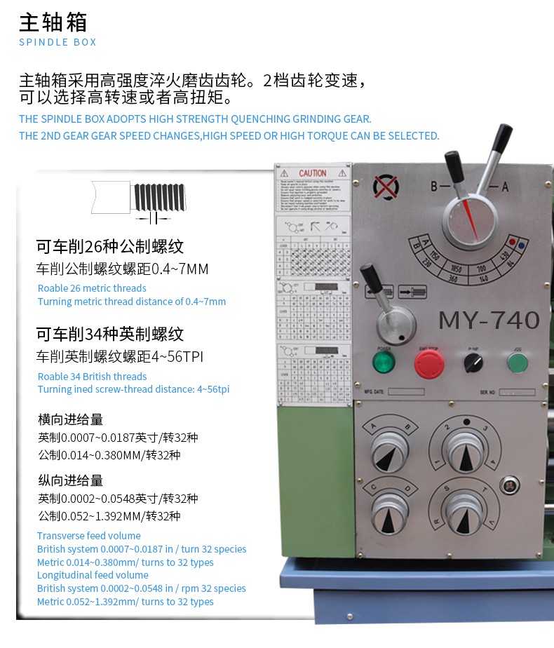 夢(mèng)鷹MY-740臺(tái)式車床加大通孔齒輪變速輕型機(jī)床